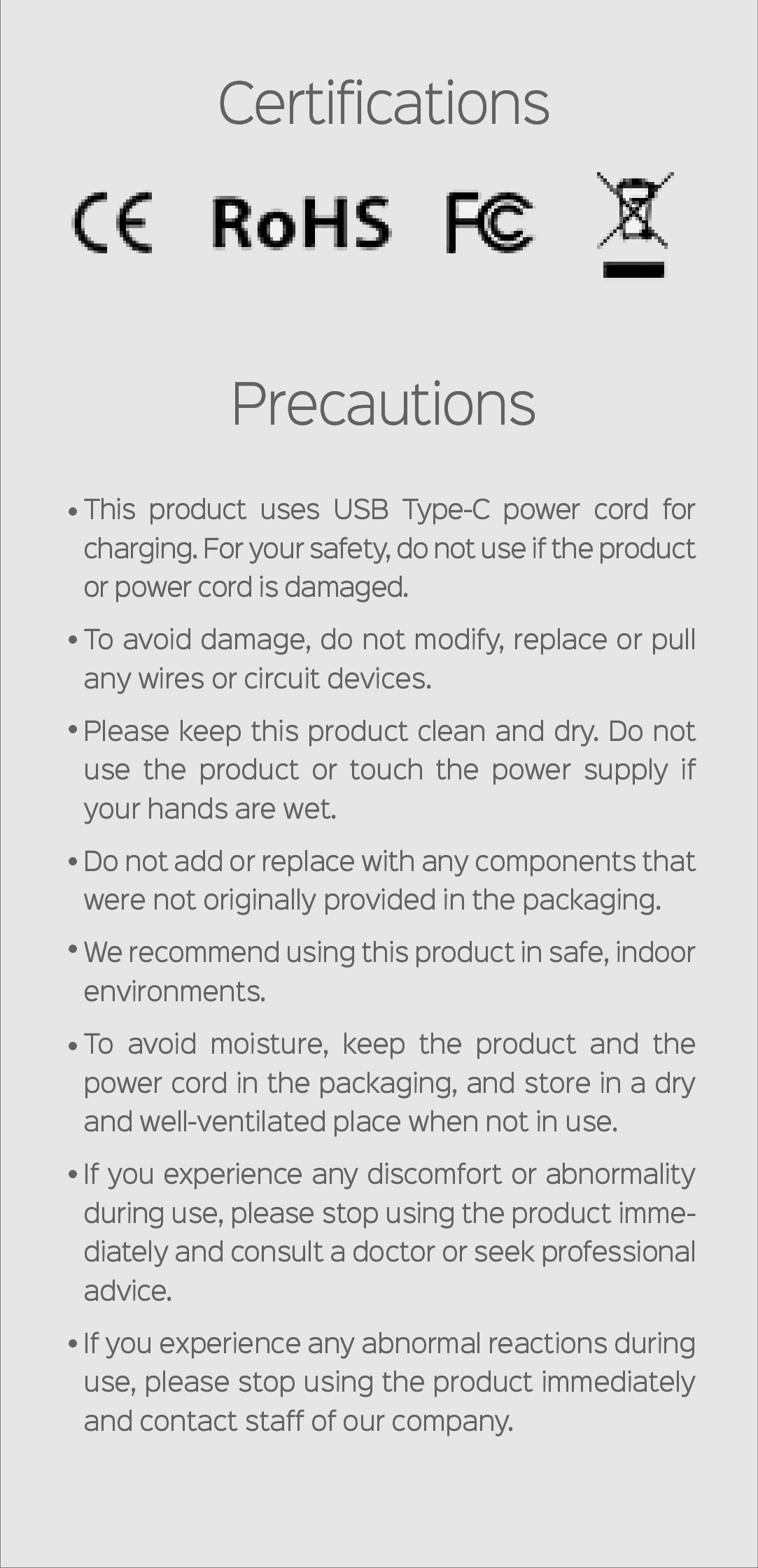 12. If you experience discomfort or abnormality during use, please stop using the product immediately and consult a doctor or seek professional advice.
