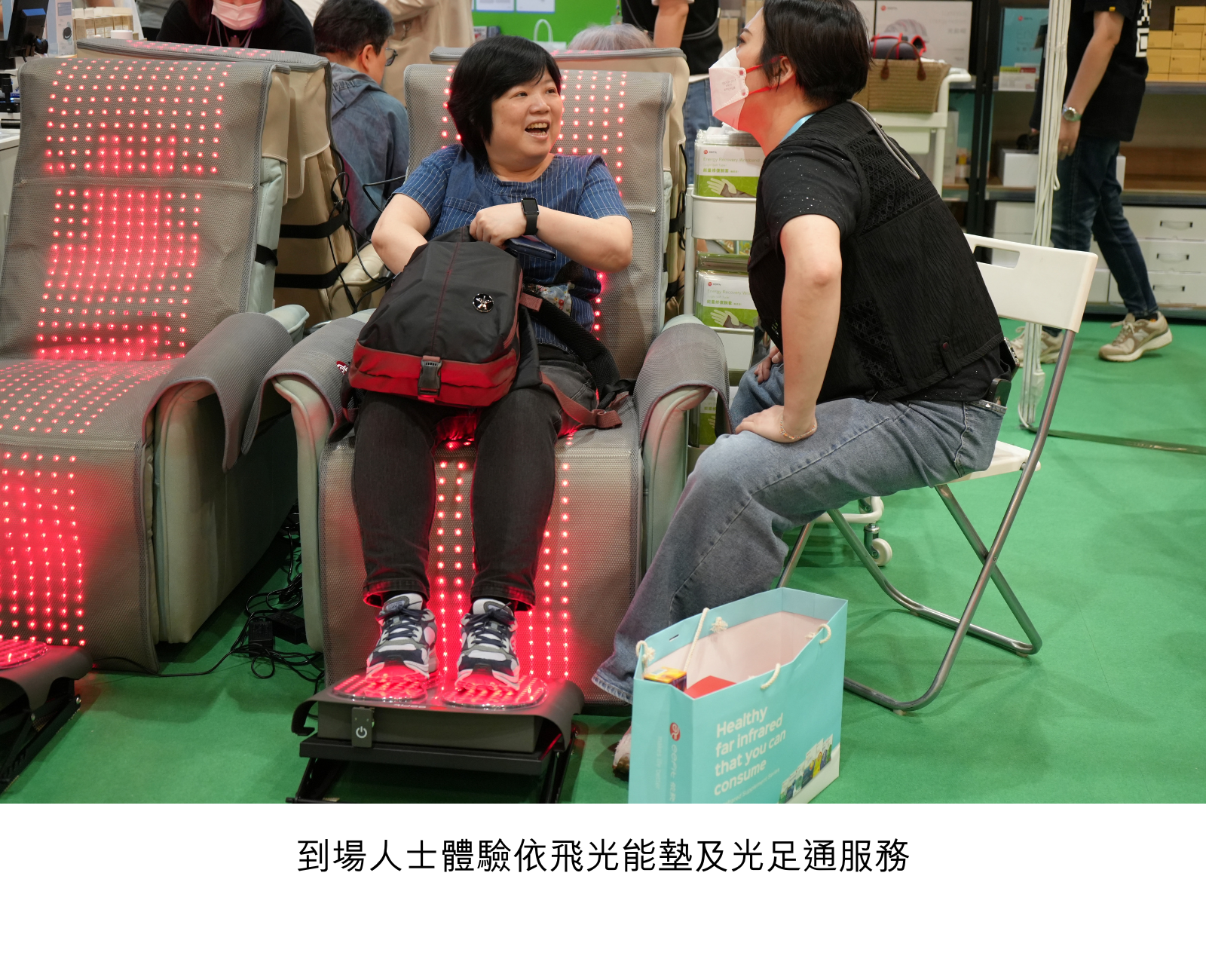 「食得嘅遠紅外」體驗區作爲本次展會焦點,吸引了眾多到場人士駐足體驗,現場好評不斷。依飛透過直接導入對健康有益的遠紅外能量到保健食品,為消費者提供了更科學、更有效的健康方案。