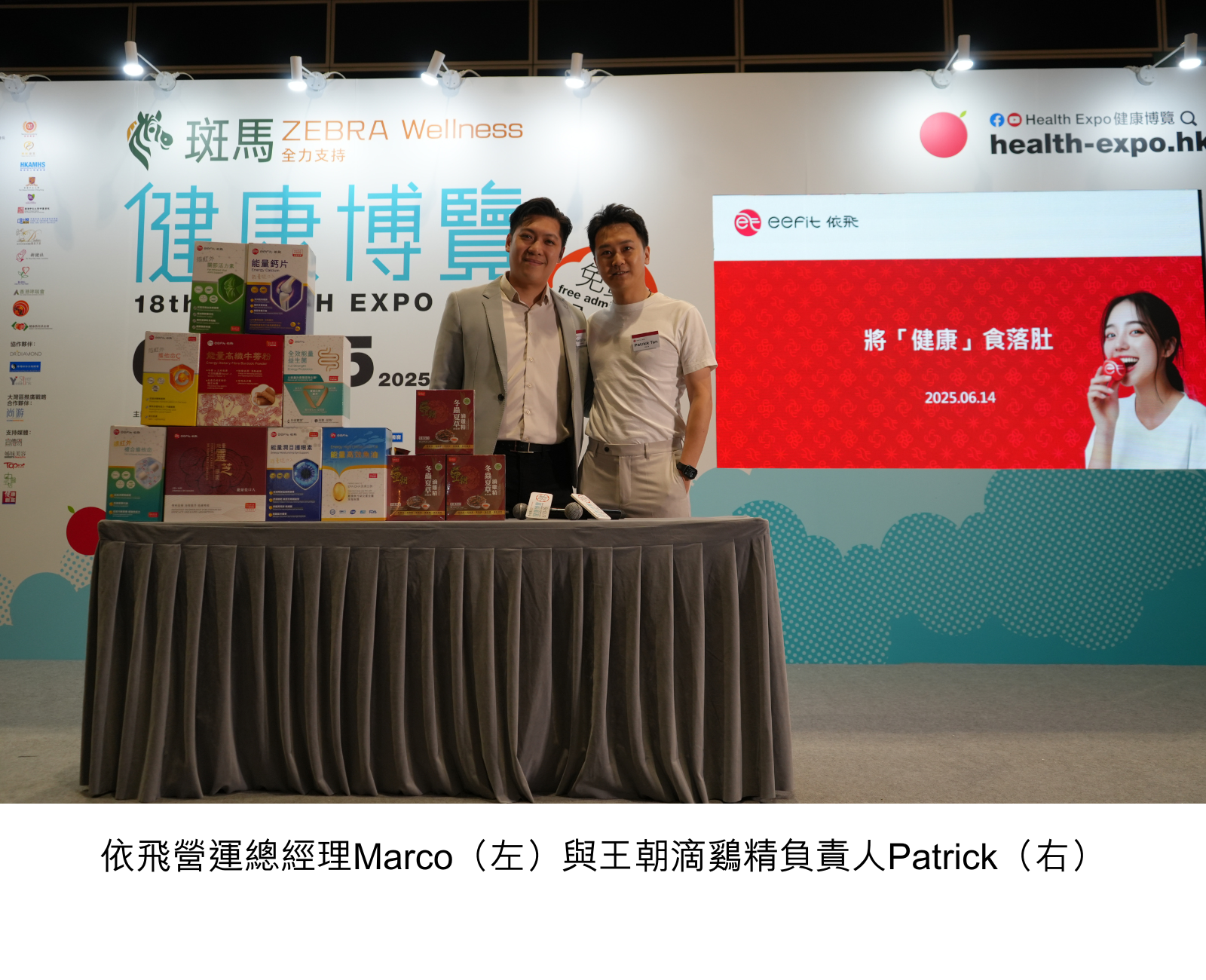 6月14日,依飛營運總經理Marco上台介紹依飛全港首創的「食得嘅遠紅外」保健食品系列,揭開了遠紅外技術與保健食品完美結合的科技奧秘;透過積極參與互動環節,現場觀眾對遠紅外食品促進血液微循環及提升營養吸收效率的健康價值表現出濃厚興趣,現場掌聲連連、氣氛熱烈