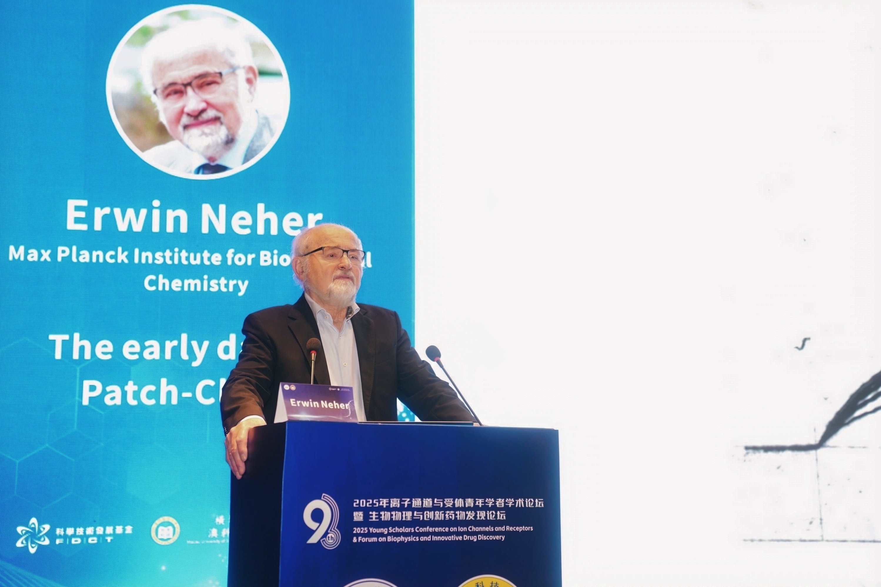 本次論壇特別邀請到1991年諾貝爾生理學醫學獎得主 埃爾文·內爾博士(Dr. Erwin Neher)擔任主講嘉賓,在開幕式上發表重要演說,分享他在生物物理與醫學領域的最新尖端研究成果,為現場學術討論注入全新活力。自2017年起,依飛與澳門科技大學「埃爾文內爾博士生物物理與創新藥物實驗室」合作推動「依飛生物醫學研發項目」。作爲依飛重要的科研合作夥伴,雙方透過緊密的產學研合作,在生物物理及創新藥物研究領域碩果纍纍。