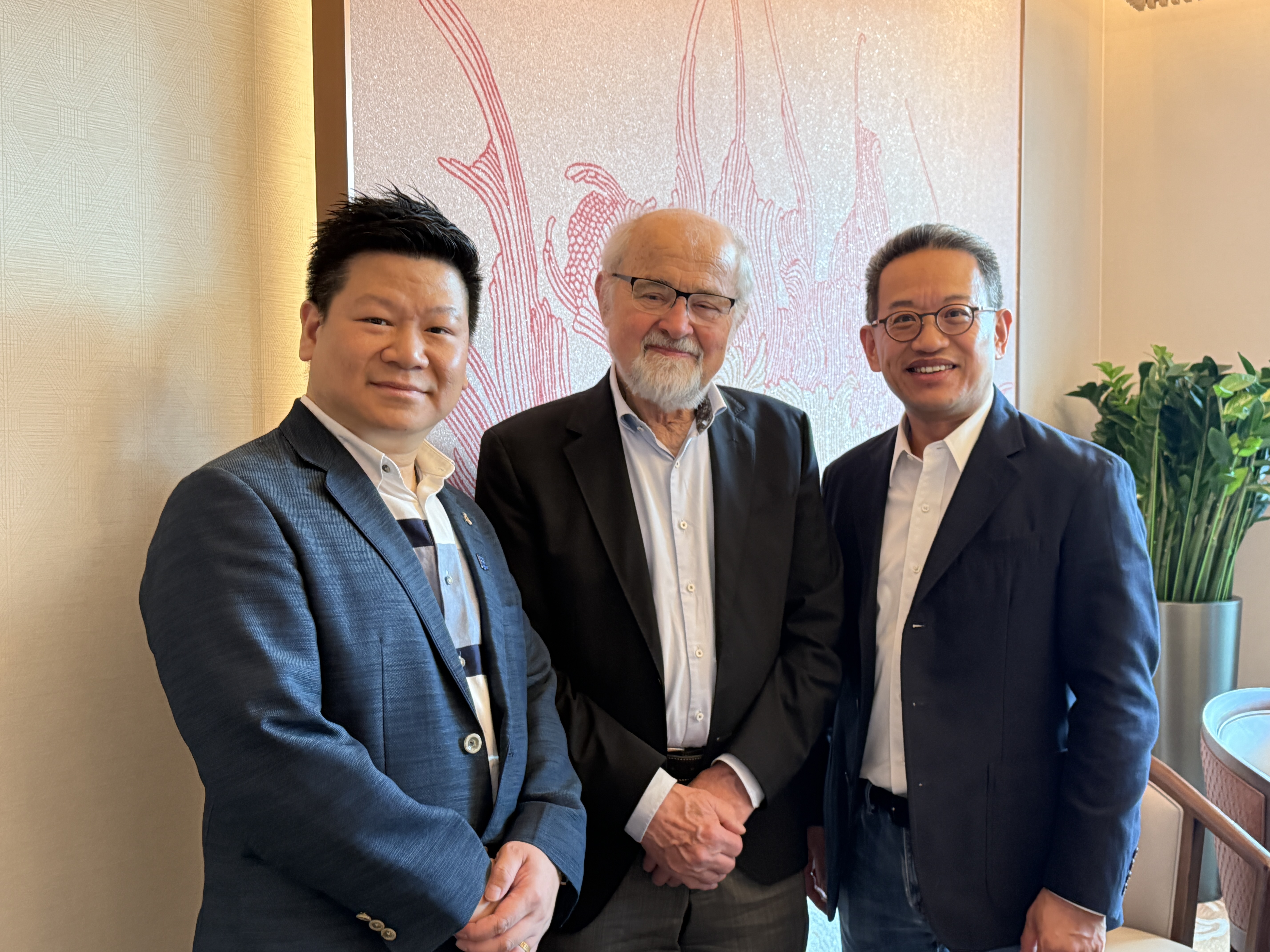 (左起)澳門科技大學黃錦偉教授、諾貝爾獎得主埃爾文·內爾博士、eefit依飛科技創辦人兼主席 王南教授