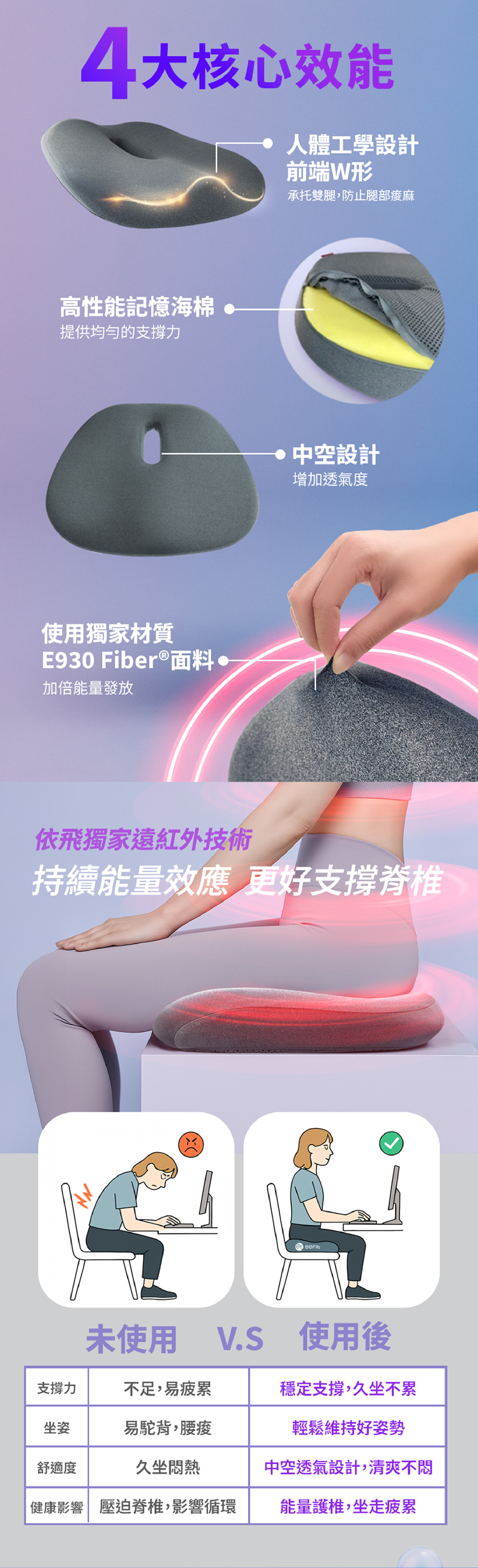 專為舒適和健康設計的產品,旨在提升坐姿體驗,減少長時間坐著所帶來的不適,有助維護腰椎及脊椎健康。