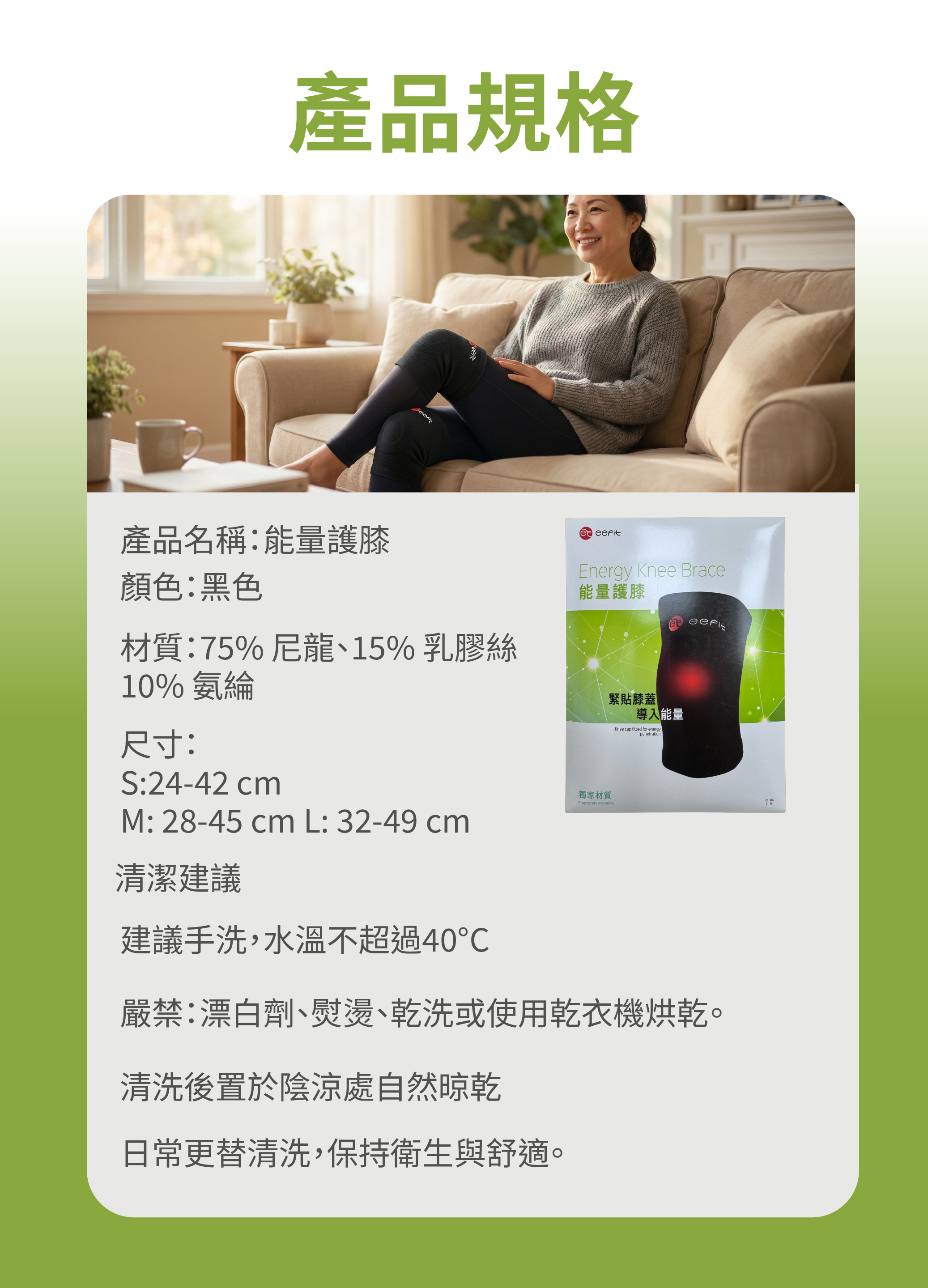 • 功能性護膝,適用於晚上穿戴,有助術後傷痛舊患,提升自癒能力