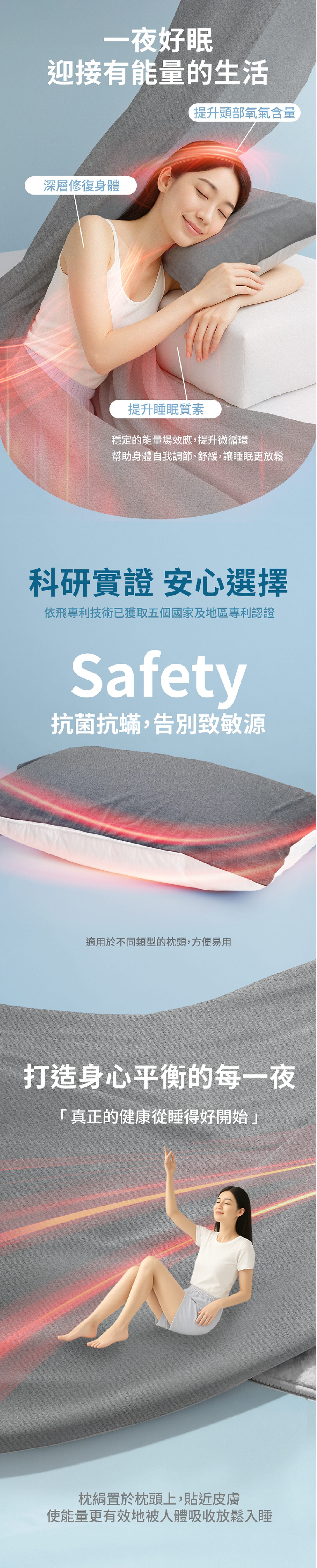 依飛能量藉同頻共振效應促進我們的血液微循環,提高血液對身體各部份輸送氧氣及養份的效益,發揮提高睡眠質素、修復身體的功用。