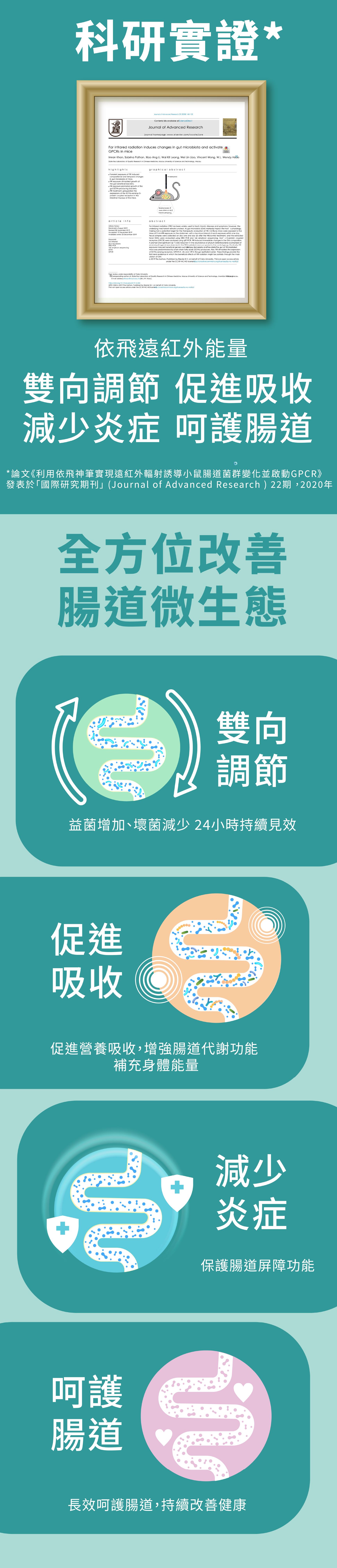 《利用依飛神筆實現遠紅外輻射誘導小鼠腸道菌群變化並啟動GPCR》發表於美國「Journal of Advanced Research」22期